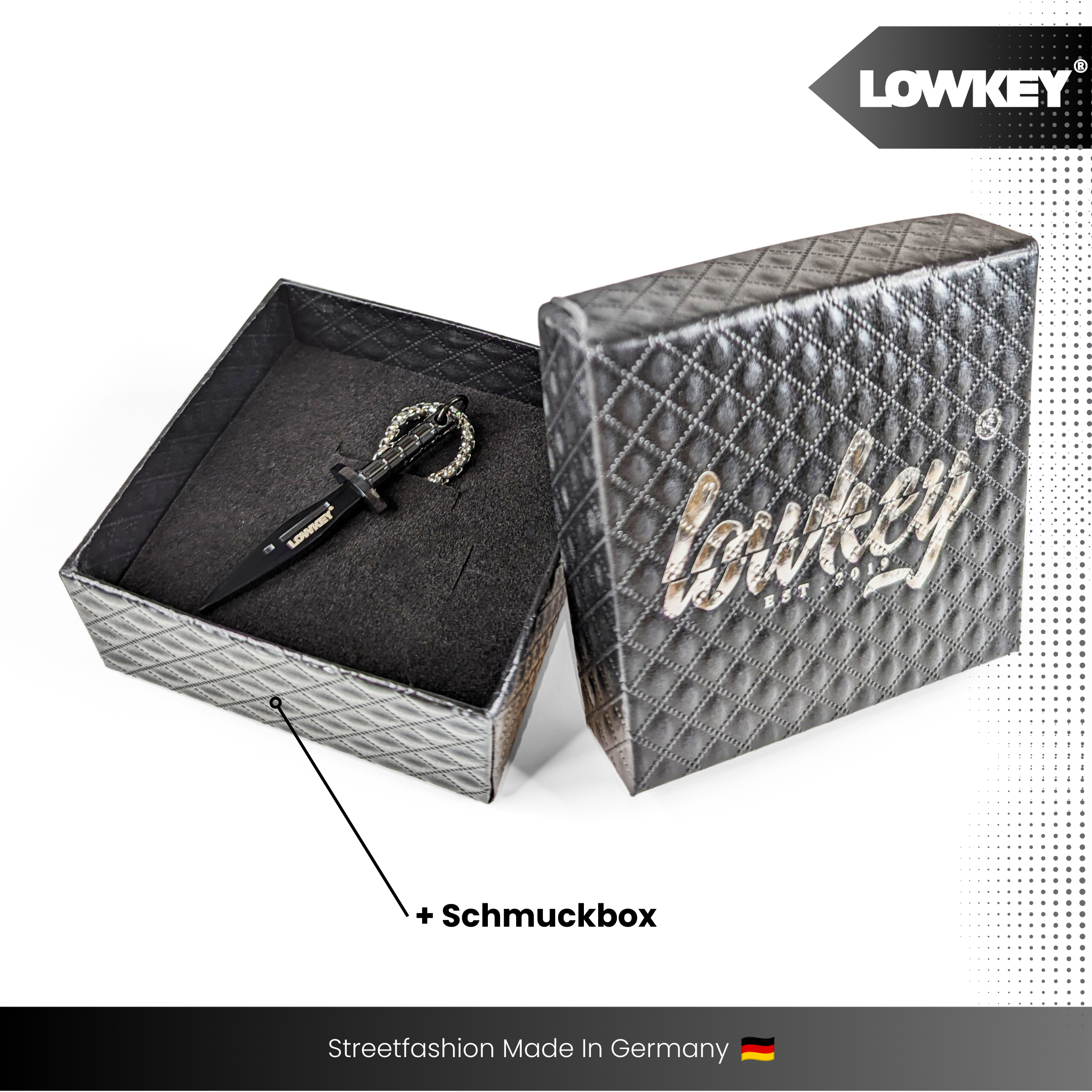 "Lowkey®" engraving on the pendant